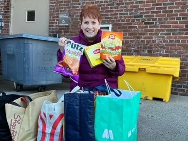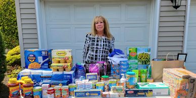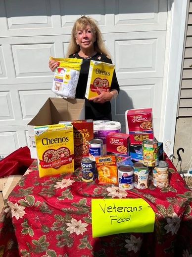 Debbie from the South Plainfield Elks donating food to Independence for Veterans.