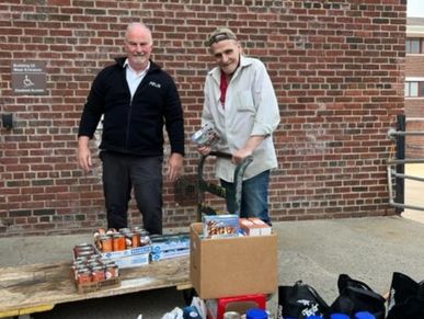 Navy veteran, Mr. Harry Slater, accepting food and clothing donations for the Lyons, NJ facility from Mrs. Stacia McDonough.