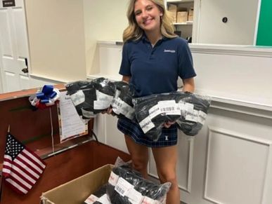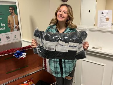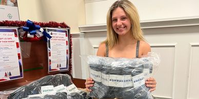 Miss Kylie Balish donating much-needed socks to help our heroes in need. Thank you for your continued support.