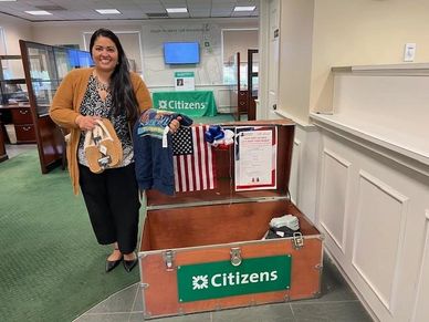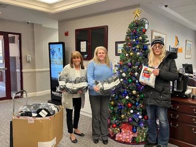Ms. Natalia Malagon, branch manager of Citizens Bank, Pluckemin, happily collecting new clothing donations for our 12th annual Christmas Drive.