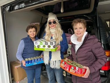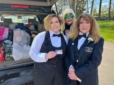 Independence for Veterans enthusiastically donating groceries for an upcoming Veterans Stand Down. The food will be given to the homeless veterans attending this event.
